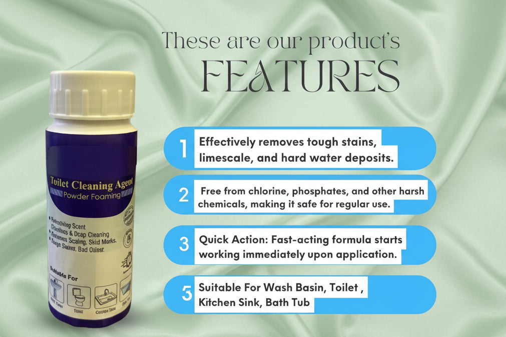 Product Name : Toilet Cleaning Agent 100 gm (Pack of 2) Package Contains: It has 2 Pack of of Toilet Cleaning Agent Foam: Powder Product Quantity: Each Weight: 100